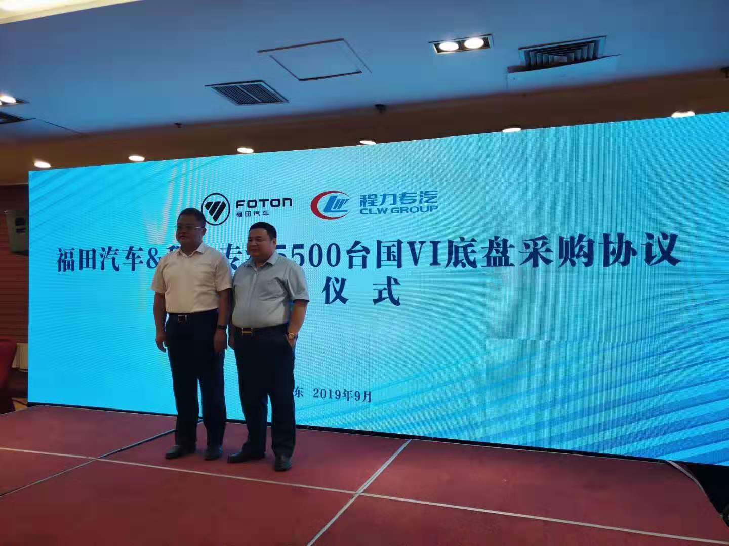 2019年9月6號.中國.山東諸城。福田汽車與程力專用汽車股份有限公司(程力專汽)戰略合作溝通交流會。福田汽車與程力專用汽車股份有限公司簽約5500臺國六汽車底盤…