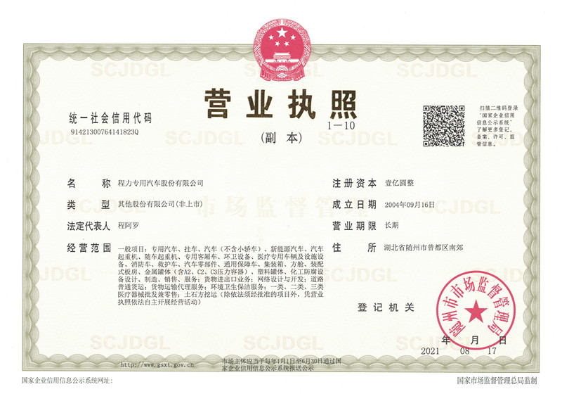 程力最新營業執照,程力專用汽車股份有限公司營業執照,程力新版營業執照,湖北程力汽車營業執照程力汽車官網:www.whdeye.com.cn,程力專汽政府和事業單位專用汽車…