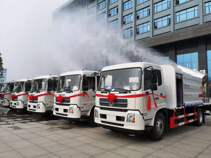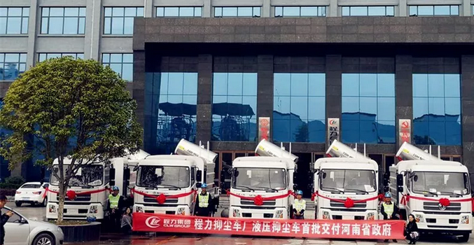 程力一體化液壓多用途智能抑塵車受到市場熱捧,河南省政府采購湖北程力一體化液壓多用途智能抑塵車首批交付 壯觀場面:
