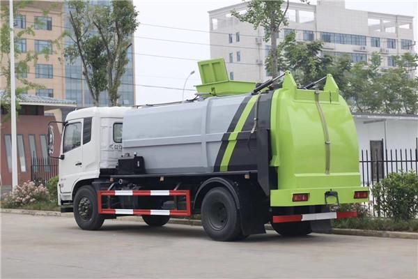 國六東風天錦方罐10-12方餐廚垃圾收集車底盤配置:采用東風天錦系列新款駕駛室,4700mm軸距,搭載國六(國Ⅵ)康明斯210馬力柴油發動機,東風6檔變速箱,9T后橋,10.00R20鋼絲胎,ABS,標配電動窗、中控鎖、鑰匙、日間行車燈、自動落鎖、斷氣剎、定速巡航、瞬時油耗,科技感十足,駕乘更舒適,GB7258新規。 國六東風天錦方罐10方餐廚垃圾收集車上裝配置:罐體容積10方,采用4mm碳鋼制作,圓距形罐體,液壓系統,配拉桿式提升機,可掛120/240升垃圾桶,推鏟卸料,具有干濕分離,罐體尾門液壓打開和鎖緊+手動鎖緊裝置,罐尾設液體自流閥,液位窗,后門液壓開啟。用于運輸液態垃圾,其特點操作簡單,密封性好,無泄漏,無異味,常用于餐館的垃圾轉運處理。 此款環衛垃圾車可加裝配置:1、罐體內部固液分離功能(全推推板,不銹鋼泔水分離網板);2、罐內加熱功能(用于嚴寒地帶防止罐內餐飲垃圾凍結凝固,采用柴油燃燒機加熱,加熱速度快效果好,可設置高低溫實現自動溫控);3、稱重功能(垃圾桶提升架稱重計量);4、罐體清洗裝置(加裝高壓泵與高壓水槍);5、吸污功能(利用真空吸污裝置直接將餐飲垃圾吸入罐體)