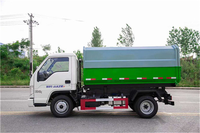 國六福田時代小卡之星2柴油5方掛桶垃圾車整車型號CLW5041ZZZ6CD型自裝卸式垃圾車,底盤型號BJ1045V9JB3-55,總質量(Kg)4495,額定載質量(Kg)1765,整備質量(Kg)2600,駕駛室準乘人數(人)2,外形尺寸(mm)4815×1830×2300mm,燃料種類:柴油, 國六福田時代小卡之星2柴油5方掛桶垃圾車底盤采用福田時代小卡之星2車身、1580mm寬駕駛室,全柴95馬力(Q23-95C60)、單排前翻、5檔、6.00R16鋼絲胎、動轉、ABS、可調方向盤、電控熄火、巡航、可調大燈、剎車自調臂, 國六福田時代小卡之星2柴油5方掛桶垃圾車上裝配置:箱體采用邊三底三碳鋼板制作,箱體前部側面帶有掛桶提升機構,可自動舉升垃圾桶倒入垃圾,帶自卸功能,帶掛桶提升機翻蓋尾部裝有橡膠密封條,防污水滴漏,掛桶垃圾車可根據客戶要求搭配120升或240升塑膠桶。