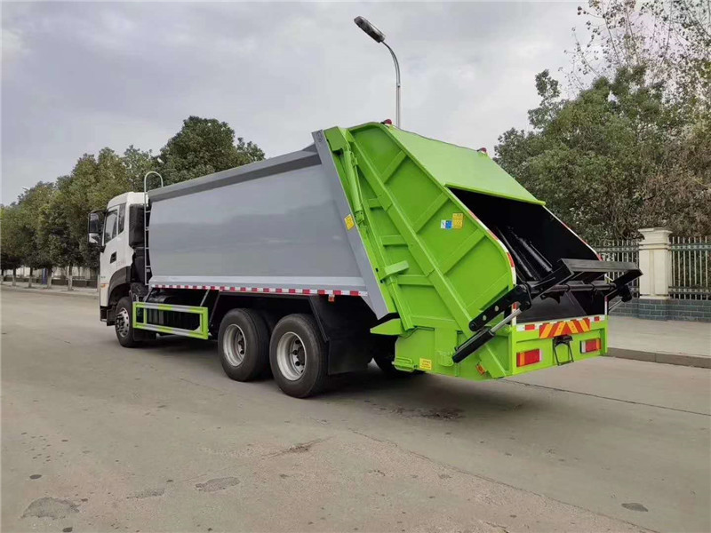 湖北程力國六東風(fēng)天龍后雙橋20方CLW5250ZYS6ZS & CLW5250ZYSD6型壓縮式垃圾車配置: 國六東風(fēng)天龍后雙橋壓縮式垃圾車搭配康明斯290馬力國六發(fā)動機,ABS,11.00R20鋼絲胎,軸距4350+1350mm,正規(guī)東風(fēng)公司GB7258-2017新規(guī)底盤;上裝采用Q345高強度錳鋼板制作,廂體容積約:20方,可裝50立方散裝垃圾,合肥雙泵合流液壓泵,揚州中梅2+3多路換向閥,加裝備壓閥,可編程PLC電控系統(tǒng),卸料時帶一鍵循環(huán)系統(tǒng),司機不下車可完工卸料工作。尾部選裝翻桶機構(gòu),可同時翻三個國標(biāo)240升方形塑料桶,帶夜間工作照明燈,方便夜間工作,可選裝帶報警器的液壓油過濾器,可選裝氣動密封蓋,可選裝遙控器操作 |