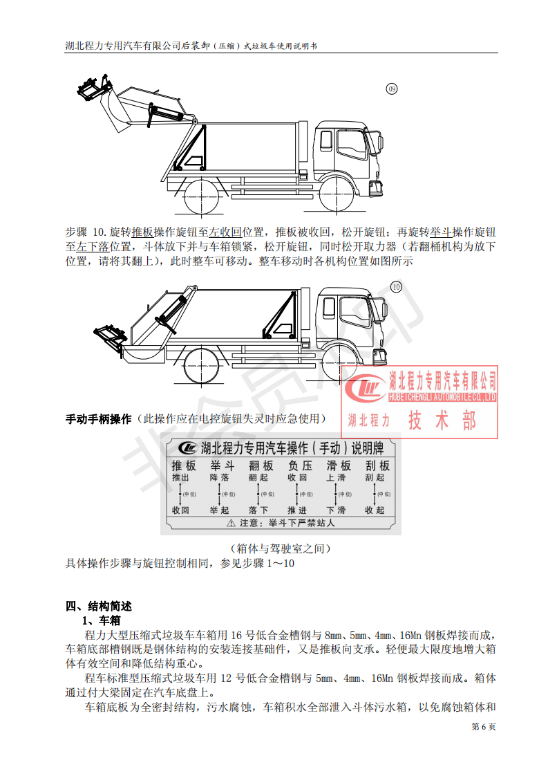 湖北程力壓縮垃圾車如何操作使用說明書
