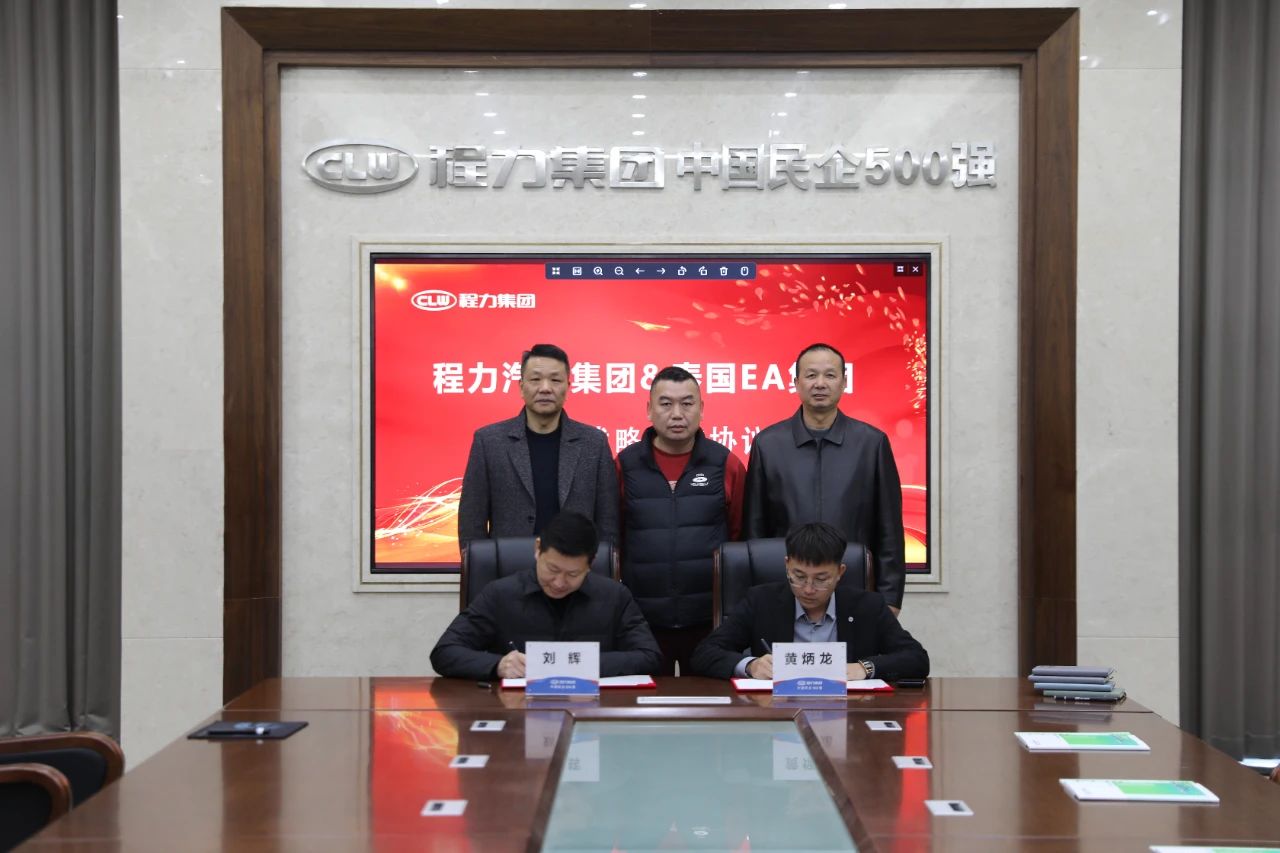 程力新能源汽車海外市場項目負責人劉輝總經理(前排左)、泰國方代表黃炳龍(前排右)舉行了簽約儀式。
