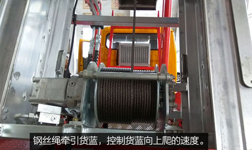 鋼絲繩牽引貨藍,控制貨藍向上爬的速度。
