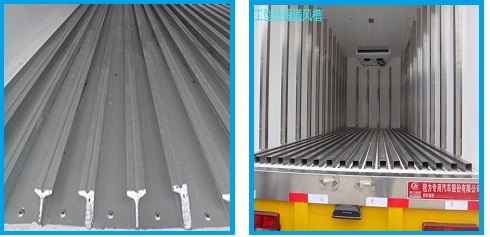 通風(fēng)系統(tǒng):底板通風(fēng)槽、廂內(nèi)四周通風(fēng)隔板。 增強(qiáng)制冷機(jī)的冷風(fēng)循環(huán)效果,安裝通風(fēng)槽后貨物不會緊貼廂體側(cè)壁與廂底,通風(fēng)槽材質(zhì)為鋁合金型材,結(jié)構(gòu)簡單易清潔。運(yùn)輸肉類或者藥品物品、箱體物品,需要加裝通風(fēng)槽,防止變質(zhì)。 |