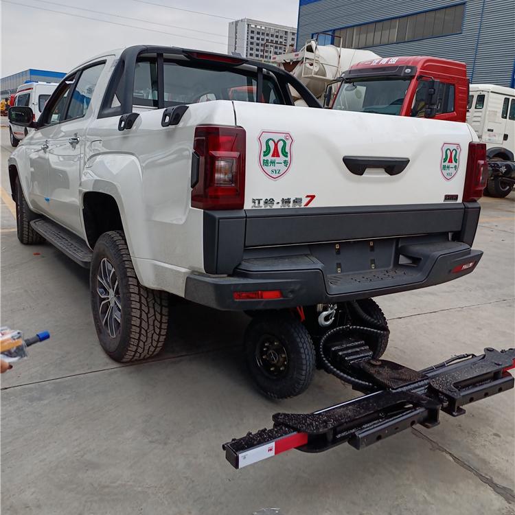 湖北程力國六江鈴域虎7皮卡清障車四驅(qū)皮卡拖車程力牌CL5030TQZ6ZK型清障車廠家配置: 地庫救援皮卡清障車,此款車型有公告,可正常上戶。該車采用江鈴域虎皮卡底盤改裝,全自動夾緊裝置,因為車身短、高度低,特別適合地下車庫的車輛救援。 江鈴域虎7皮卡手動擋皮卡清障車配置:選用國六域虎7皮卡底盤,國六B級排放標準福特發(fā)動機141馬力,6擋變速箱,中冷增壓柴油發(fā)動機,分時高低速四驅(qū),3085軸距,冷暖空調(diào),真皮座椅,原廠倒車影響,ABS,265,70R16真空越野胎,多功能方向盤,電動玻璃遙控一鍵啟動功能。前后碟剎,鋁合金輪轂,腳踏板2.0T排量,貨箱噴涂。 江鈴域虎7皮卡手動擋皮卡清障車上裝配我廠最新款 第五代專利 產(chǎn)品萬向輔助輪,配無線遙控器真正的全自動抱胎,備用線按鈕,鋼板加強,3噸電動液壓單元,雙油缸托3節(jié)伸縮托臂,進口部件,進口油封,全自動抱胎,贈萬向輔助小車2個,4條綁帶,贈送前配重。 第五代上裝~帶萬向輔助輪后托臂,依據(jù)力學原理,優(yōu)化設(shè)計,根據(jù)拖車的重量遙控調(diào)節(jié)輔助輪的相應(yīng)高度,車速輕松跑;規(guī)避了已經(jīng)淘汰的第三代國定輔助輪拖臂因不能調(diào)節(jié)摩擦力大速度受限帶來的一系列問題(限速、費油、摩擦大引起的爆胎。 湖北程力國六江鈴域虎7皮卡清障車四驅(qū)皮卡拖車程力牌CL5030TQZ6ZK型清障車圖片價格: