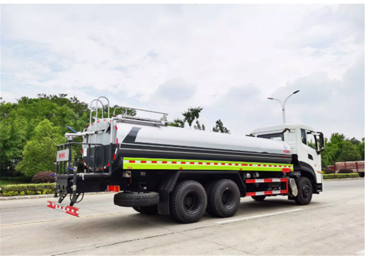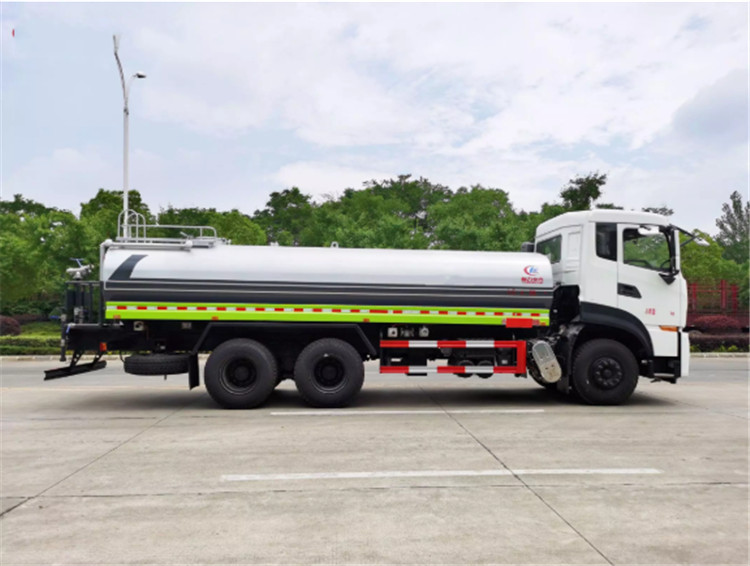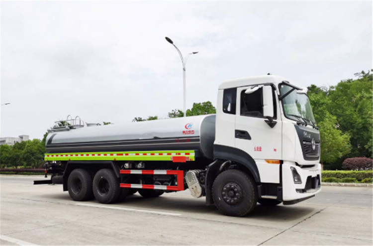 東風天龍KL/VL后雙橋灑水車是一款采用國六排放標準東風天龍后雙橋原裝底盤改裝的環(huán)衛(wèi)車,該車配置豪華,駕乘舒適,該車罐體容積:18立方米,標配前沖、后灑、側噴、后平臺高炮,是園林綠化、小區(qū)物業(yè)、公路養(yǎng)護的常用車型。 國六東風天龍后雙橋18方高端灑水車(綠化噴灑車)底盤配置:采用東風天龍后雙橋原裝底盤,東風天龍豪華駕駛室,4400+1350mm軸距,搭載國六(國Ⅵ)東風康明斯290馬力柴油發(fā)動機,功率213kw;東風商用DDi350馬力柴油發(fā)動機,功率257kw,國六排放,陜齒法士特9檔變速箱,11.00R20鋼絲胎/295真空胎,前橋5T,后橋雙10T,方向助力,斷氣剎,排氣制動,原裝空調,行駛記錄儀,多媒體顯示屏,電動門窗,中控鎖,氣囊座椅,ABS。 國六東風天龍后雙橋18方高端灑水車(綠化噴灑車)專用配置:罐體容積:18立方米,罐體鋼板為4mm碳鋼Q235材質專用容積板一次成型,罐內隔板具有防波作用,以減輕汽車行駛時罐體液體沖擊;配大功率專用灑水泵,泵可自吸自排;整車前沖、后灑、側噴、后平臺帶綠化灑水炮,灑水炮可全方位旋轉,可連續(xù)調成直沖狀、大雨、小雨、毛毛雨;前封頭帶水位計,后平臺主管路帶1寸澆花接口,后爬梯,帶1個消防接頭,帶1個自流閥,1個過濾裝置。